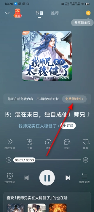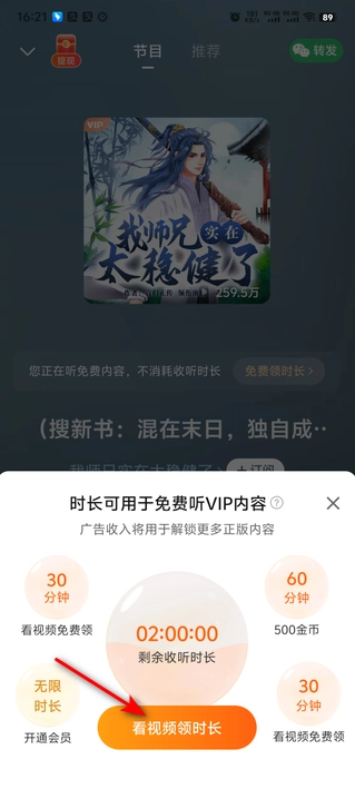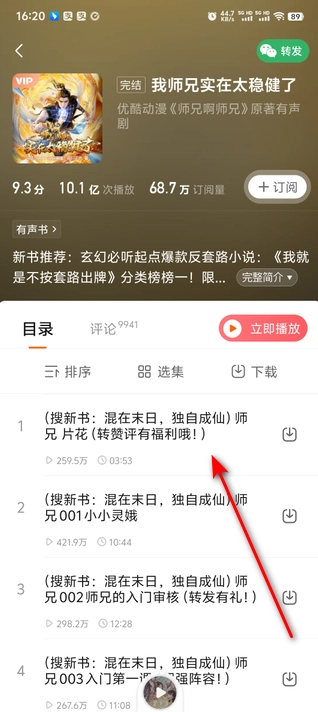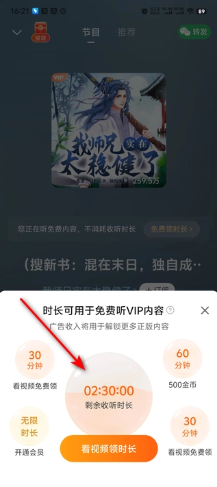 看到詳細的小說目錄,聽小說還能賺取零花錢