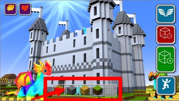 材料欄:可快速挑選草地、磚塊、巖石等不同類型的方塊,點擊就能切換建材。
