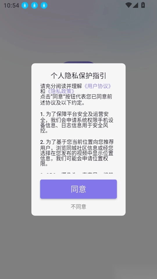 首先打開(kāi)應(yīng)用點(diǎn)擊“同意”按鈕進(jìn)入中。
