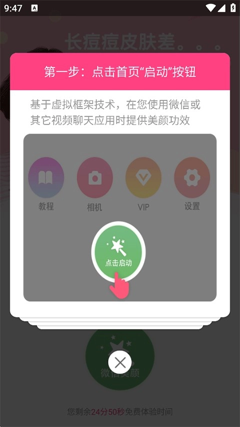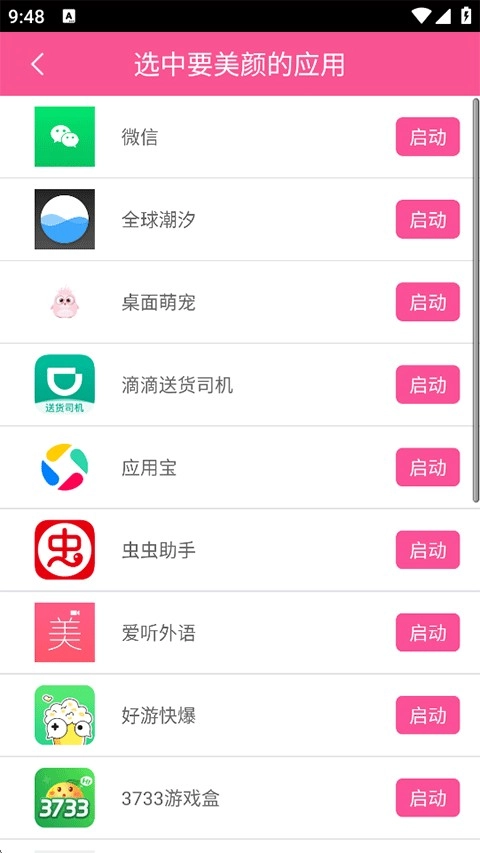 在本站下載安裝微微視頻美顏助手后打開應用,接著點擊首頁的啟動按鈕即可。