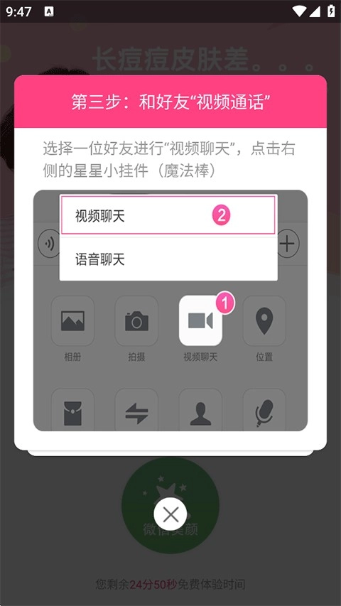 挑選一位好友開啟視頻聊天,之后點擊右邊的小星星魔法棒;