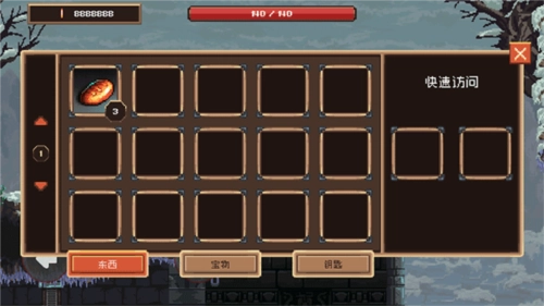 點擊血條旁邊的頭盔會有背包欄和狀態(tài)欄