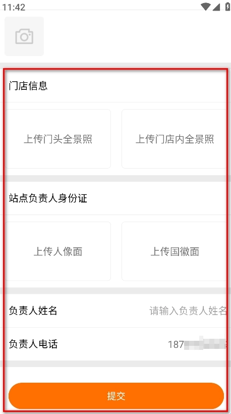 請(qǐng)上傳門(mén)店信息照片以及站點(diǎn)負(fù)責(zé)人身份證的正反兩面照片,接著輸入負(fù)責(zé)人姓名,最后點(diǎn)擊提交按鈕就可以了。