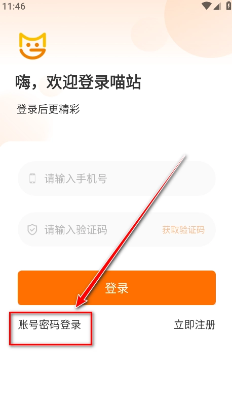 打開(kāi)喵站,點(diǎn)擊賬號(hào)密碼登錄。