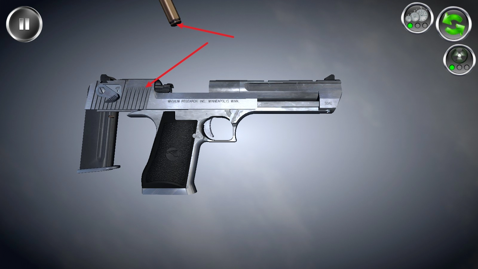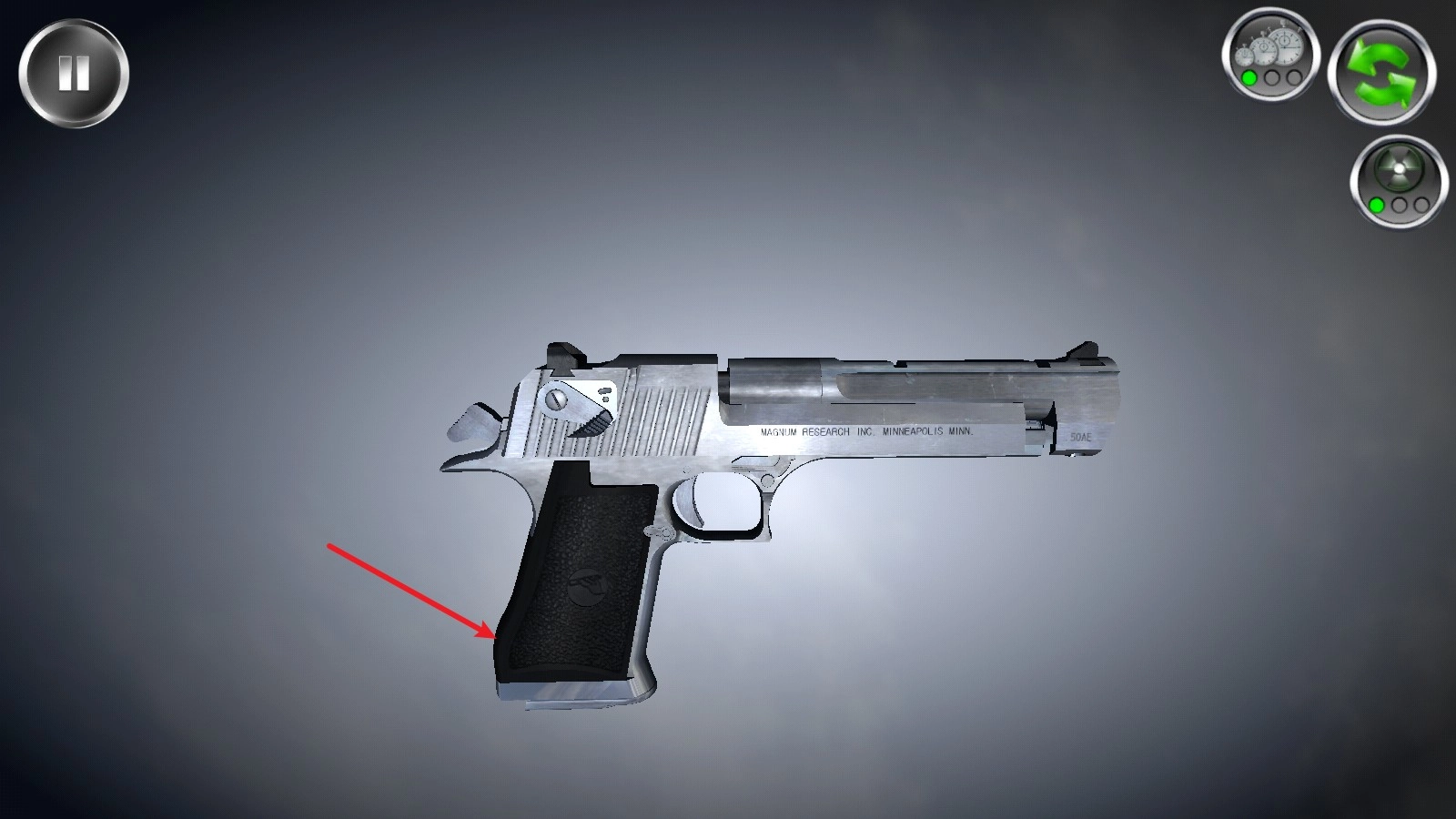我們拿手槍來(lái)舉例。首先要做的是把手槍的彈夾取下來(lái)。絕大多數(shù)武器的第一步操作都是取下彈夾。