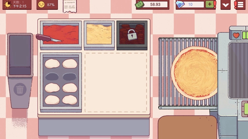 真實烹飪復刻:從面團的揉捏、醬料的鋪勻,到配料的撒布、披薩的烤制,游戲精準還原了披薩制作的每一個細微步驟,讓您仿佛穿越時空,置身于煙火彌漫的真實廚房之中。
