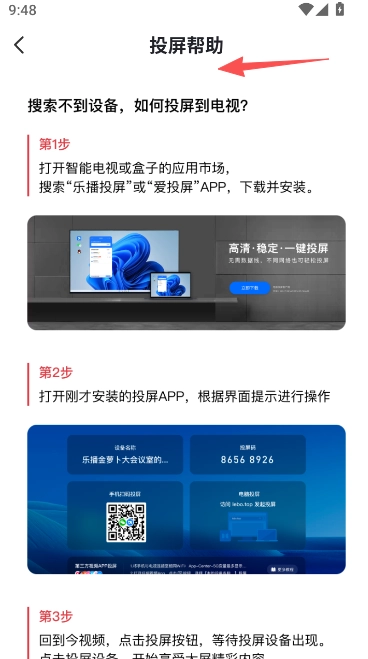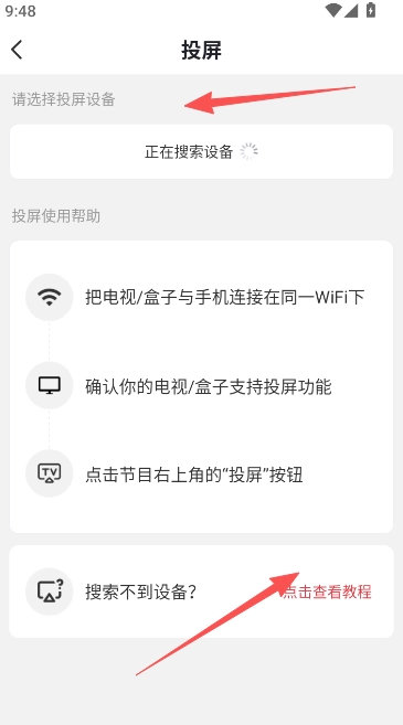 請耐心等待投屏設備完成搜索,若出現(xiàn)提示無法搜索到設備的情況,建議您點擊查看相關教程。