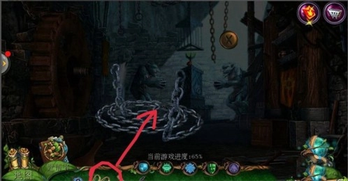 首先點擊左側(cè)的場景【哥布林房間】,接著點擊中間偏下位置的齒輪;在齒輪的旁邊獲取到【鐵鏈】;使用【八邊形鑰匙】開啟機關(guān)后,從地面上拾取【鐮刀】。