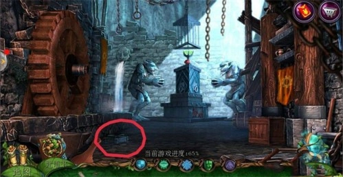 接下來進入【哥布林房間】場景,把地上的【箱子】挪到右側(cè);點擊右上方的架子,獲取【鉗子】和【連接器】。