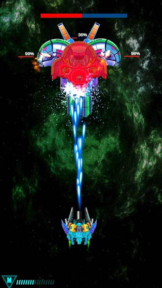 它達成了沉浸式的任務體驗與精美的關卡設計。在入侵者的一波波攻勢中奮勇前行,躲避如雨點般襲來的火箭,同時收集各類強化道具,以此提升飛船的火力輸出。