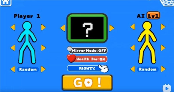 首先大家進(jìn)入至尊決斗者火柴人游戲,進(jìn)入游戲后能看到人機(jī)模式和1v1模式,另外也可以和好友開展1v1的pk賽。