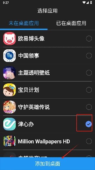 勾選需要添加的應用后點擊添加到桌面