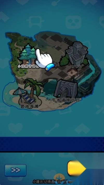 接著挑選你想要探索的地圖,目前一共有四個(gè)區(qū)域可供探索,分別是小浣熊市郊區(qū)、市中心、碧池海灘和下水道排污口,點(diǎn)擊其中任意一個(gè)區(qū)域就能前往探索。