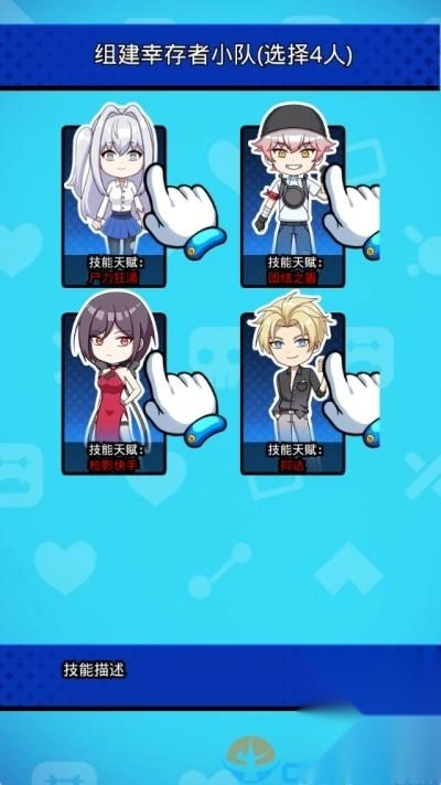 在出發(fā)前,你可以組建自己的幸存者小隊(duì),小隊(duì)成員總共能選四個(gè)人,選好之后就可以進(jìn)入了。