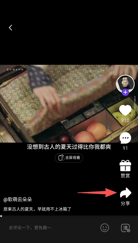 在視頻頁面完成點(diǎn)贊、評(píng)論操作,或是點(diǎn)擊分享按鈕,以此傳播文化內(nèi)容。