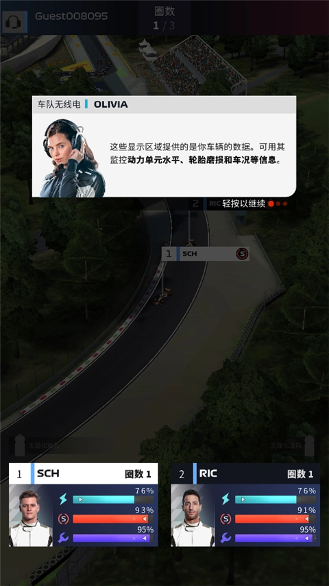 接著進(jìn)入比賽環(huán)節(jié),這里有玩家的兩位車手,在比賽過程中,玩家能夠?qū)λ麄冞M(jìn)行管理。