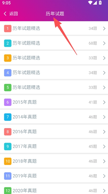 打開軟件進入歷年試題板塊、選擇目標(biāo)試題套組。