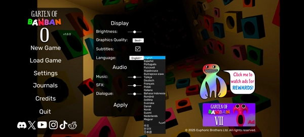 班班幼兒園0手機(jī)版也叫班班幼兒園起源、Garten of Banban 0,是一款3D冒險(xiǎn)解謎游戲。它和經(jīng)典的波比游戲時(shí)間相似,采用第一人稱視角讓玩家體驗(yàn)密室探索的樂趣,不過游戲背景設(shè)定在一所藏著詭異怪物的幼兒園,營(yíng)造出更獨(dú)特的氛圍。在游戲里,玩家會(huì)身處黑暗的幼兒園中,周圍滿是壓迫感強(qiáng)烈的氛圍。需要在這個(gè)危機(jī)四伏的環(huán)境里,收集線索與道具,對(duì)謎題進(jìn)行合理分析,同時(shí)還要提防五顏六色的怪物襲擊,像小菜雞、翡翠船長(zhǎng)這些經(jīng)典恐怖角色都在其中。隨著游戲劇情慢慢推進(jìn),玩家能發(fā)現(xiàn)更多隱藏的秘密和任務(wù)。