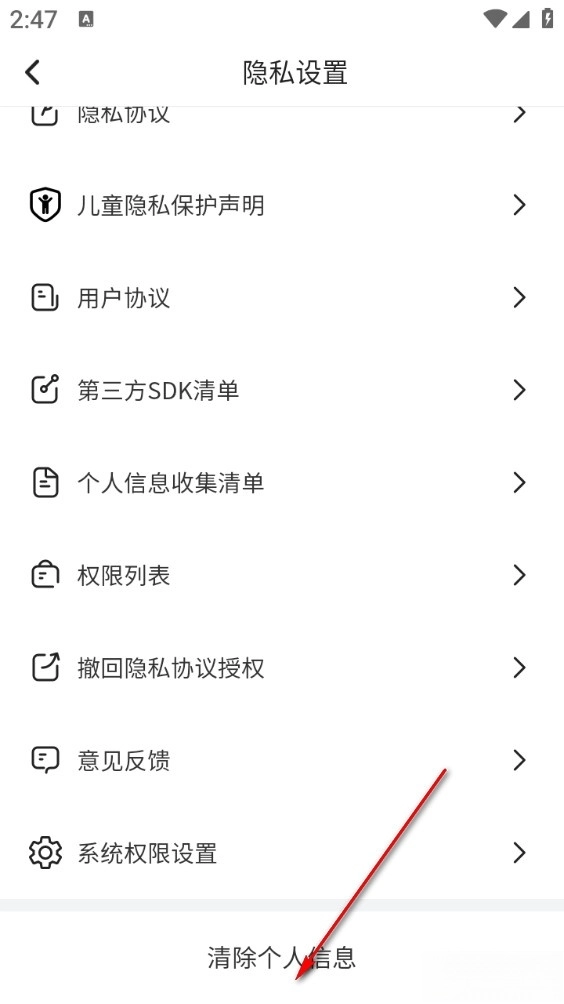 然后滑動到最下方選擇清除個人信息