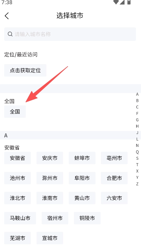 啟動軟件后,挑選對應(yīng)的城市選項(可以選擇全國范圍,也可以選定具體的省或市),以此明確購車的地域范圍。