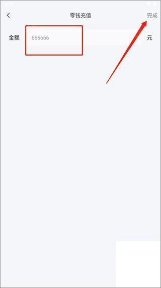 4、輸入充值金額后,點擊右上角“完成”;