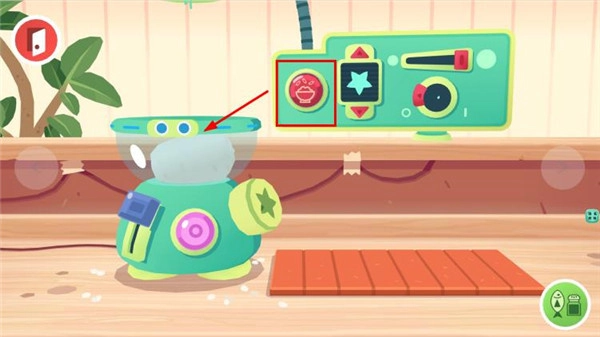點(diǎn)擊界面旁邊的米飯圖標(biāo),把適量的米飯放進(jìn)專用制作機(jī)器里,為塑形操作做準(zhǔn)備。
