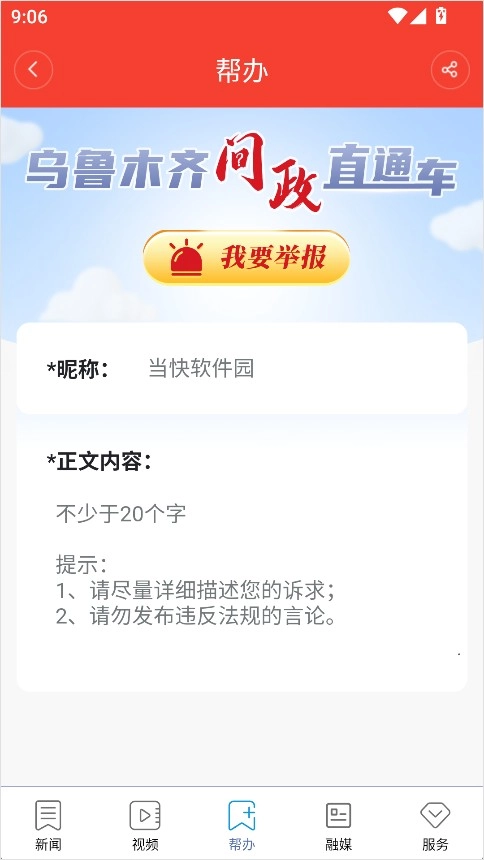 打開掌上烏魯木齊應(yīng)用,點(diǎn)擊底部導(dǎo)航欄里的【幫辦】入口;