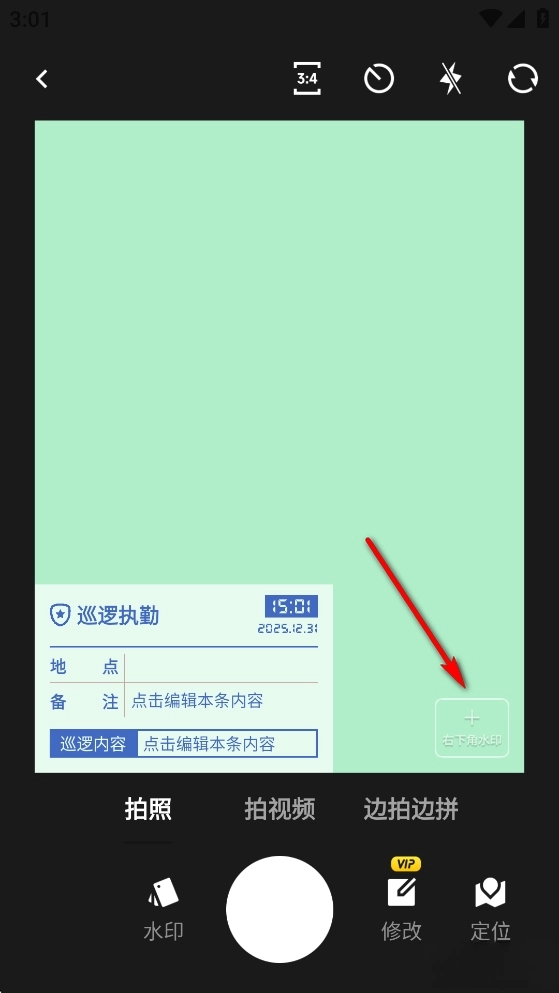 實時拍攝與便捷編輯:拍攝界面支持實時預覽并添加水印,同時也能對已有的照片進行批量水印添加或修改操作。