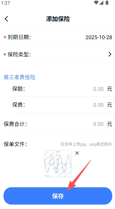 上傳保單文件,點(diǎn)擊保存,完成保險(xiǎn)記錄添加。