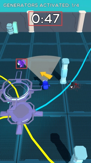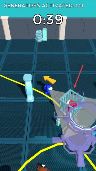 游戲時留意上方的時間顯示,按照箭頭的指示行動,碰到其他角色要多加小心,借助場景里的建筑隱蔽好自己,可別被抓住啦。