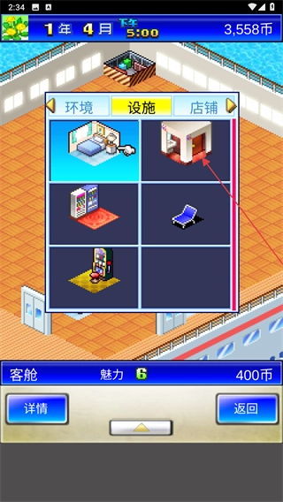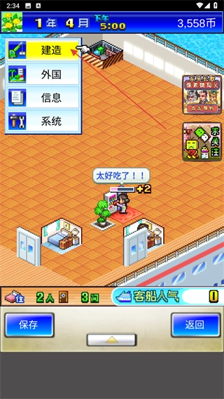 利用經(jīng)營(yíng)所得的收益來(lái)擴(kuò)充游輪的規(guī)模,增添艙室的數(shù)量以及設(shè)施的種類,開啟更高級(jí)別的經(jīng)營(yíng)功能,從而逐步提高游輪的豪華水平。
