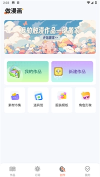 進(jìn)入“創(chuàng)作”欄目后,你就能直接著手制作漫畫,創(chuàng)建屬于自己的新作品。