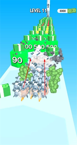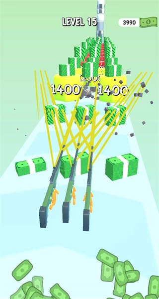 使用強(qiáng)化后的武器打破大量障礙物,贏得高額金幣獎(jiǎng)勵(lì),從而迅速增加資源儲(chǔ)備,加快關(guān)卡推進(jìn)速度。