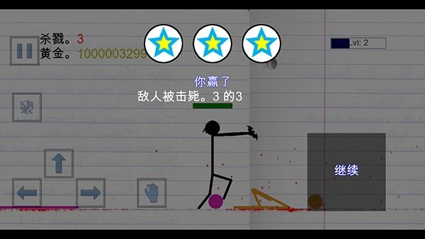 當(dāng)所有敵人都被消滅后,你就能成功贏得游戲,點擊【繼續(xù)】按鈕即可返回主界面。