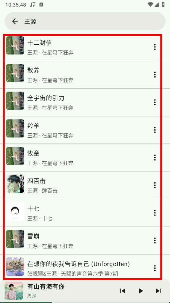 3、完成搜索后涵蓋多個(gè)歌曲,點(diǎn)擊所需的歌曲進(jìn)入。