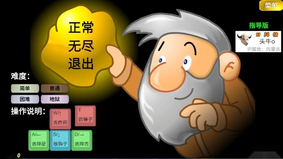 進入黃金礦工指導版游戲后,玩家可在【正常模式】與【無盡模式】中任選其一,同時還能自主調(diào)節(jié)難度等級(涵蓋簡單至地獄難度)。界面下方設有操作指南,詳細說明了礦鉤、投擲炸藥、使用錘子等功能的操作方法,助力玩家迅速熟悉游戲玩法。