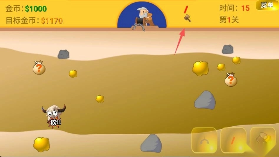 在使用鉤子抓取金礦的過程中,牛頭會不定時發(fā)起干擾,玩家需要精準把控時機,對準礦石出鉤,以免空鉤消耗不必要的時間。