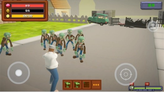 控制戴夫的操作方式如下:通過(guò)屏幕左側(cè)的控制桿來(lái)操控戴夫移動(dòng),右側(cè)的設(shè)計(jì)按鈕則用來(lái)進(jìn)行攻擊或使用植物。另外,輕滑屏幕能夠調(diào)整視角,以便觀察周邊的環(huán)境。