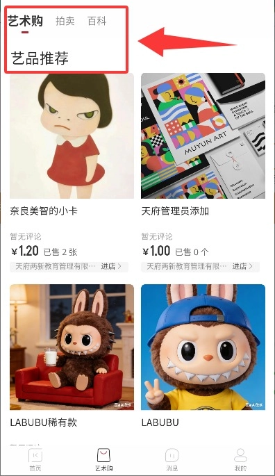 登錄成功后,您可以在首頁(yè)或者導(dǎo)航欄里點(diǎn)擊“藝術(shù)購(gòu)”,進(jìn)入到藝術(shù)品的瀏覽和選購(gòu)頁(yè)面。