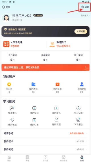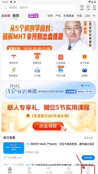 打開醫(yī)學學習類應用,點擊底部的“我的”選項,進入個人中心頁面。
