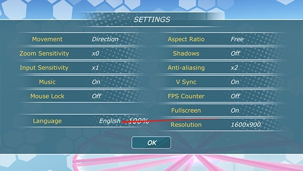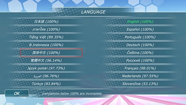 2、點擊language旁邊的“English 100%”