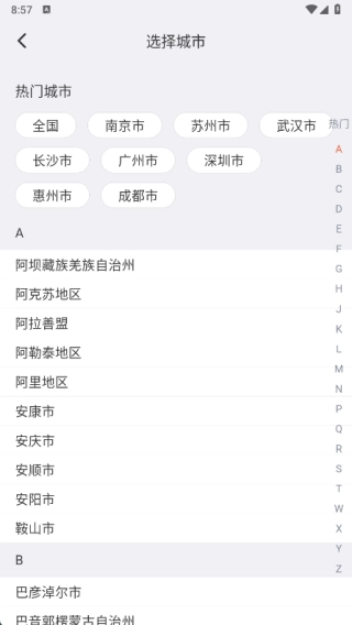 點(diǎn)擊主頁左上角的城市選項(xiàng),就能選擇你所在的城市,從而快速獲取本地的招聘信息。