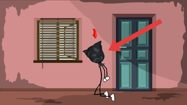 展示一個(gè)套著袋子當(dāng)頭部的火柴人角色,在房間里試圖打開房門以逃脫的畫面,這是火柴人冒險(xiǎn)解謎類游戲里常見的關(guān)卡設(shè)定,借助火柴人形象與密室逃脫的玩法,來促使玩家進(jìn)行解謎并通過關(guān)卡。