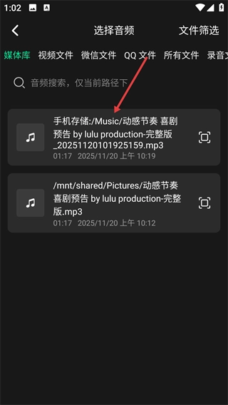 選擇想要轉(zhuǎn)換的音頻。