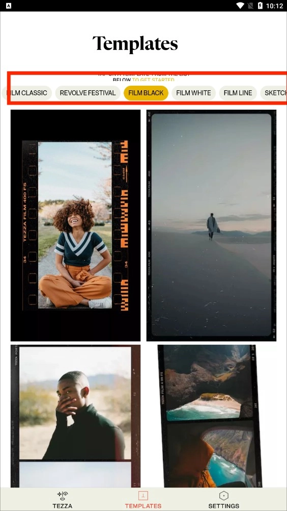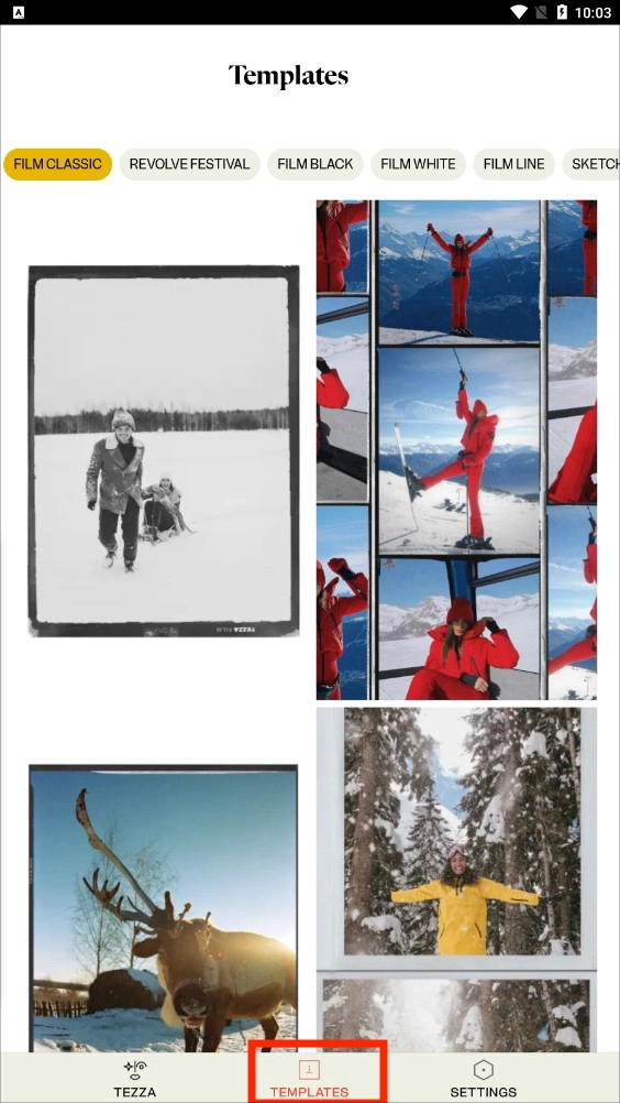 上方可以選擇不同風(fēng)格的模板濾鏡。