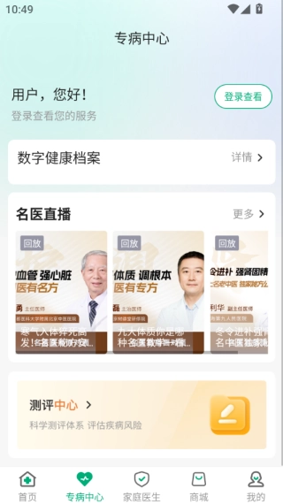 點(diǎn)擊專病中心欄目,即可在此處完成登錄操作,該平臺(tái)還提供數(shù)字健康檔案等相關(guān)功能。