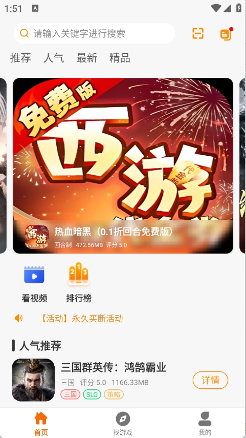 首頁為玩家推薦了當(dāng)前熱門的游戲資源。