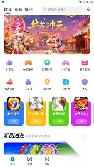 233樂園的入口就是它主打的游戲盒子軟件,里面收錄了超多有趣的游戲,海量?jī)?nèi)容庫(kù)總能找到你鐘愛的那一款,點(diǎn)擊就能直接開玩,加載速度飛快,全程無延遲,體驗(yàn)感超棒。這里還是游戲愛好者的交流社區(qū),能和成千上萬的同好互動(dòng)交流,用起來特別方便順手。借助獨(dú)家技術(shù),不用安裝到手機(jī)就能快速體驗(yàn)游戲,享受別樣的游玩快感。感興趣的朋友可別錯(cuò)過233樂園哦。