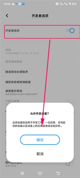開發(fā)者選項中啟用調(diào)試模式