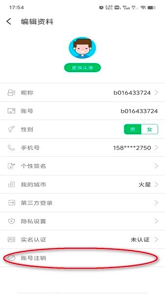 3. 編輯資料中找到"賬號(hào)注銷"選項(xiàng)